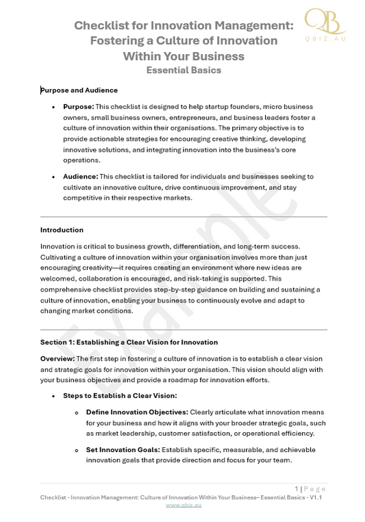 Checklist for Innovation Management: Fostering a Culture of Innovation Within Your Business