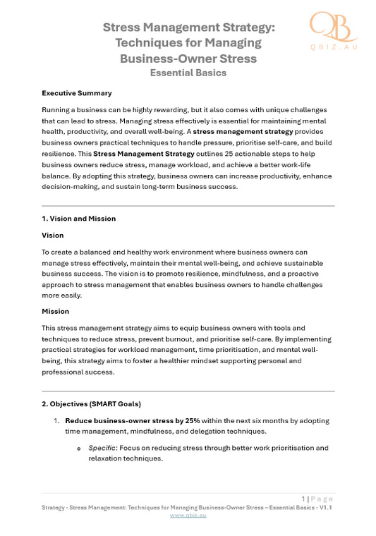 Stress Management Strategy: Techniques for Managing Business-Owner Stress