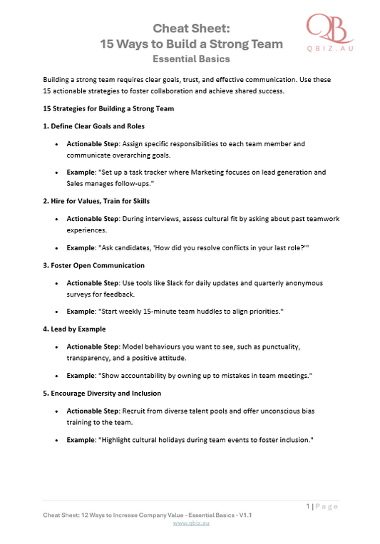 Cheat Sheet: 15 Ways to Build a Strong Team