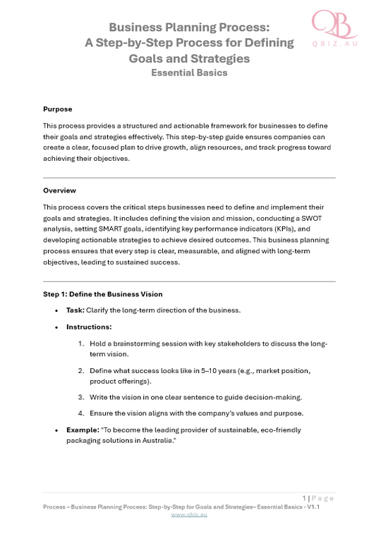 Business Planning Process: A Step-by-Step Process for Defining Goals and Strategies