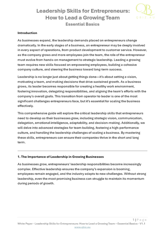 White Paper: Leadership Skills for Entrepreneurs: How to Lead a Growing Team