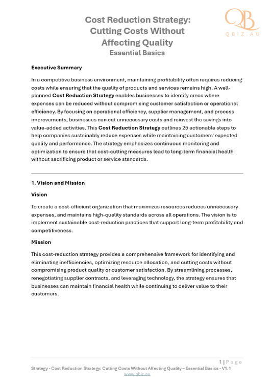 Cost Reduction Strategy: Cutting Costs Without Affecting Quality