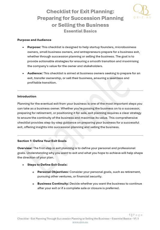 - A: The checklist provides a step-by-step guide to preparing your business for sale, including optimising financial performance, streamlining operations, and identifying potential buyers.