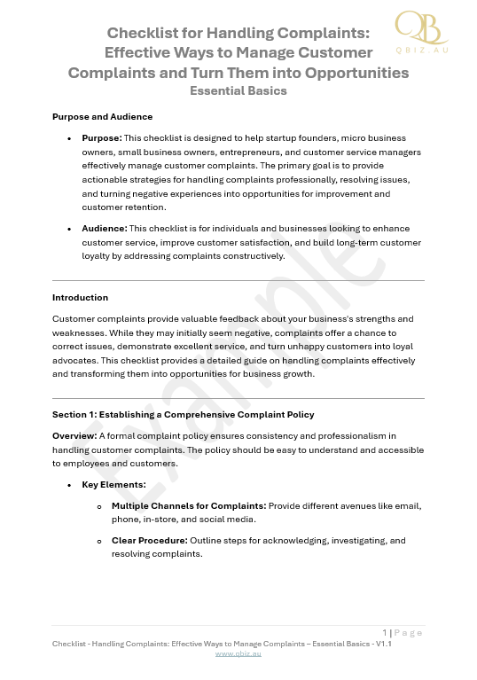 Product Description: The "Checklist for Handling Complaints: Effective Ways to Manage Customer Complaints and Turn Them into Opportunities" is a comprehensive guide designed to help businesses turn customer complaints into valuable opportunities for improvement. This checklist provides actionable strategies for effectively managing customer complaints, resolving issues promptly, and using feedback to drive continuous improvement, ensuring customer satisfaction and loyalty.