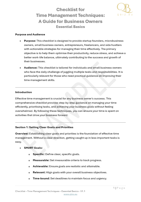 Checklist for Time Management: Balancing Business Responsibilities with Personal Life